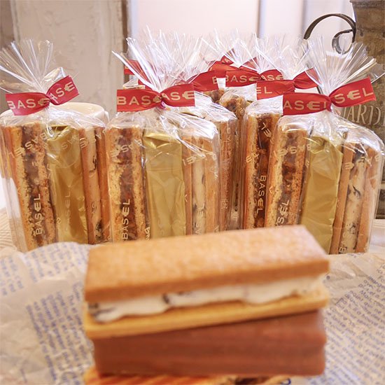 アーモンド入りのクッキー生地に、ラム酒付のレーズンの入った北海道産のバタークリームを挟んだ、BASEL自慢のレーズンサンドです。