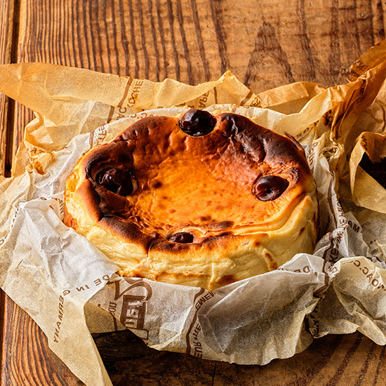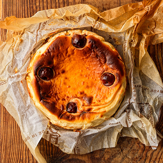 キルシュ(さくらんぼのお酒)に漬けたチェリーとラム酒を加えた、大人なチーズケーキです。