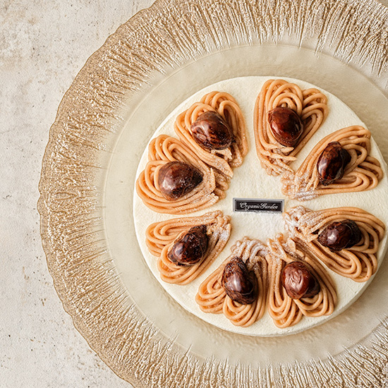 マロンダイスをサンドし、イタリアマロンクリームと渋皮煮をトッピングしました。
